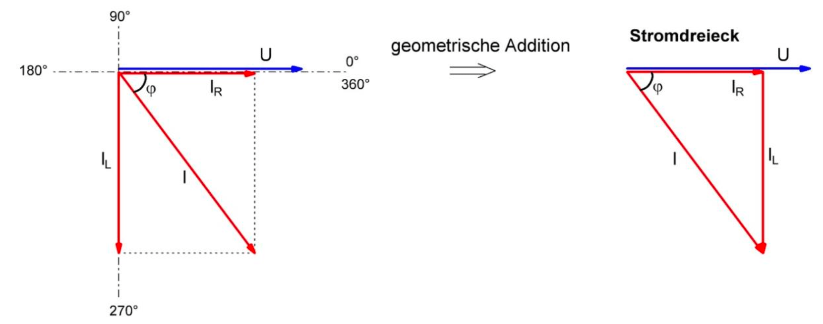 Deshalb müssen auch die Ströme \( I_R \) und \( I_L \) um 90\( ^\circ \) phasenverschoben sein.